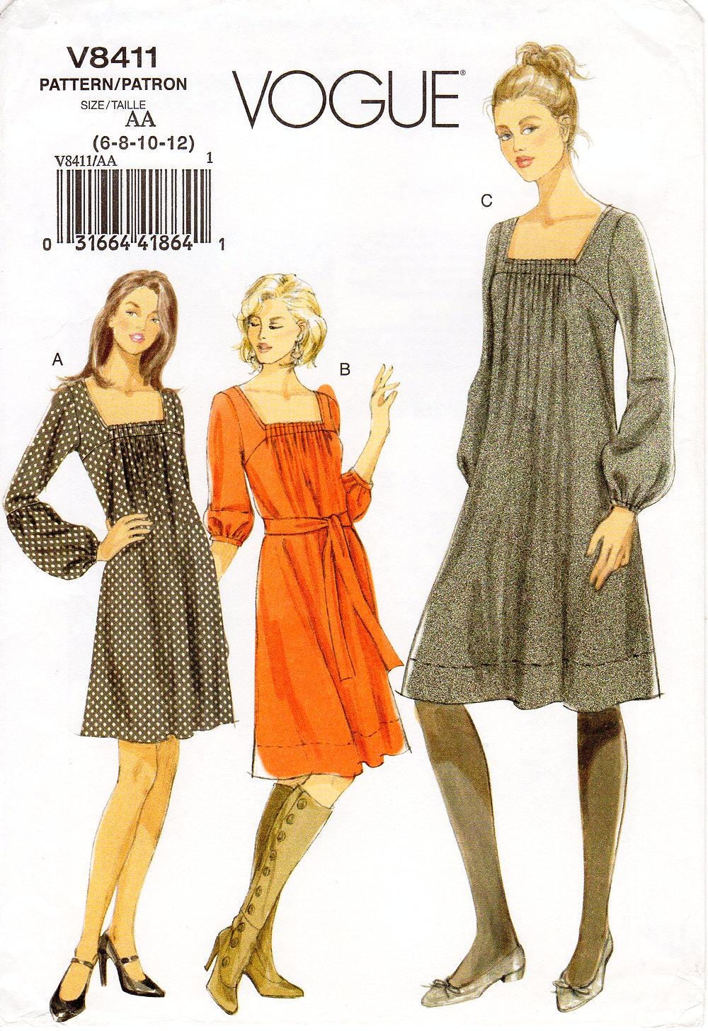 Easy Vogue Dress Pattern V8411 Size 6 8 10 12 Dress Sash Etsy